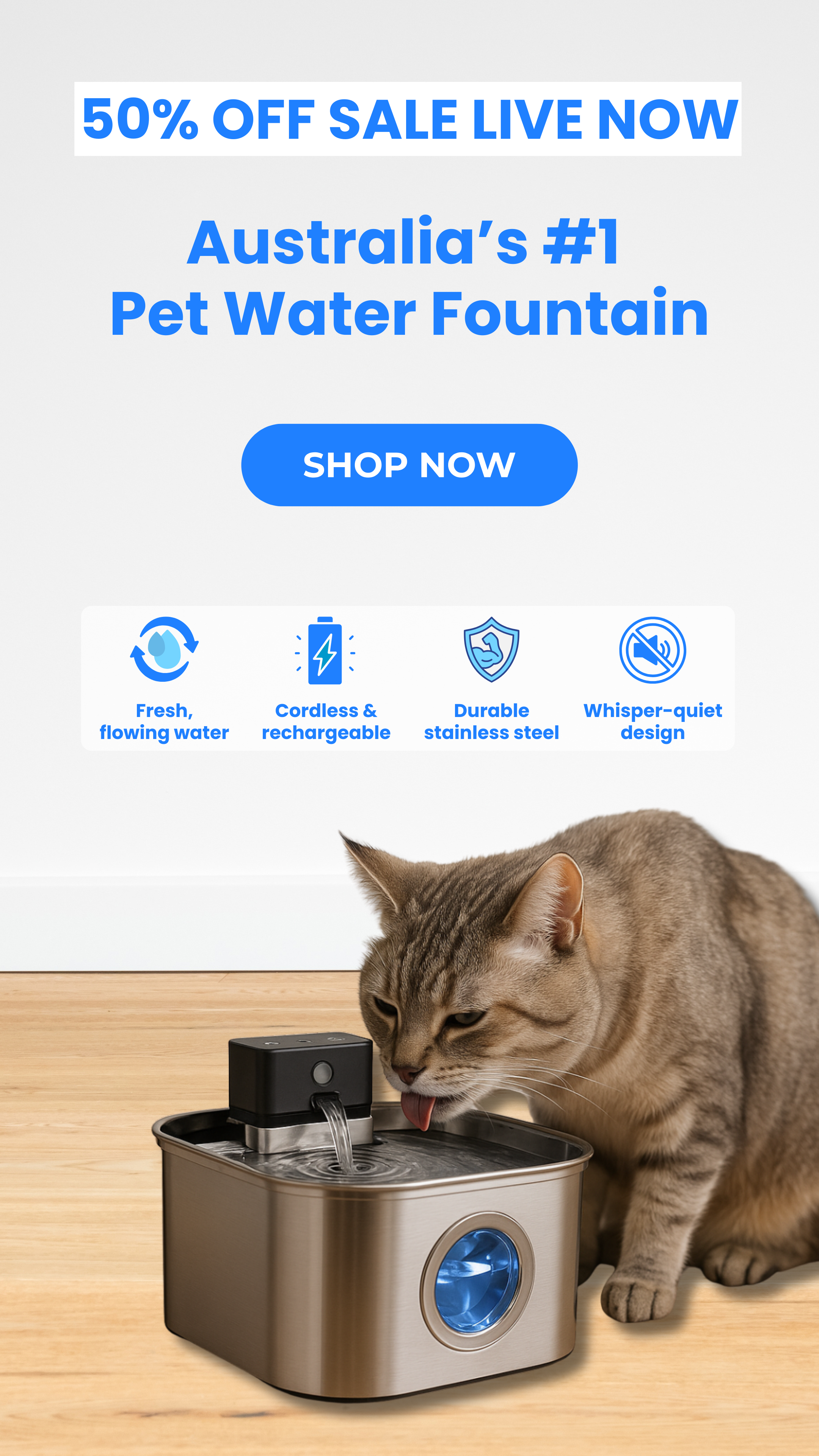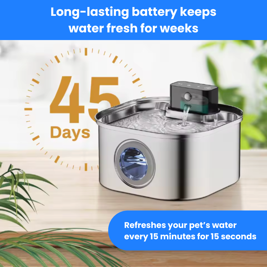 Keep your pet happy, healthy, and hydrated with Sippo, the smart stainless-steel water fountain that keeps water flowing, fresh, and irresistibly clean.
