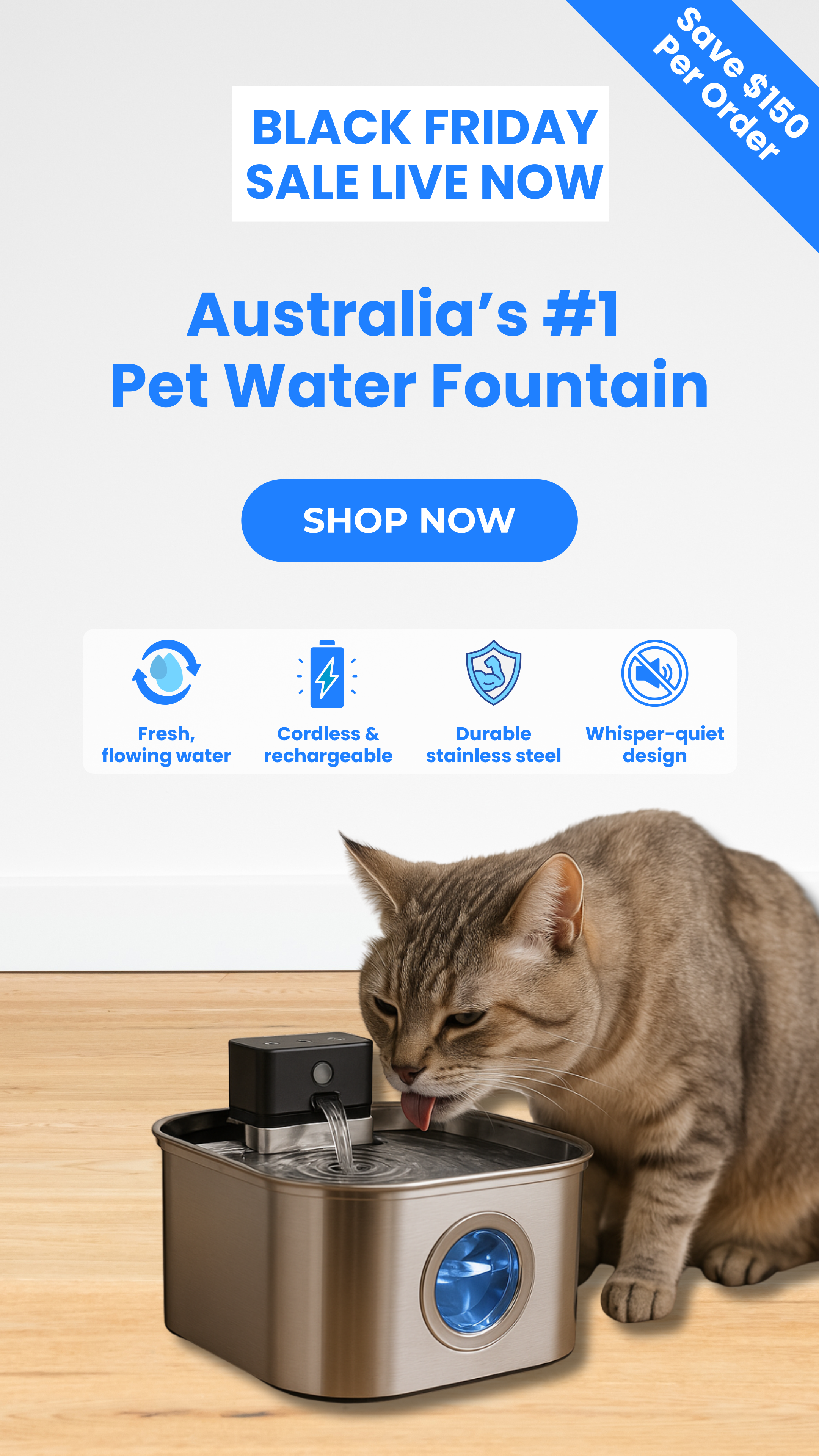Keep your pet happy, healthy, and hydrated with Sippo™, the smart stainless-steel water fountain that keeps water flowing, fresh, and irresistibly clean.